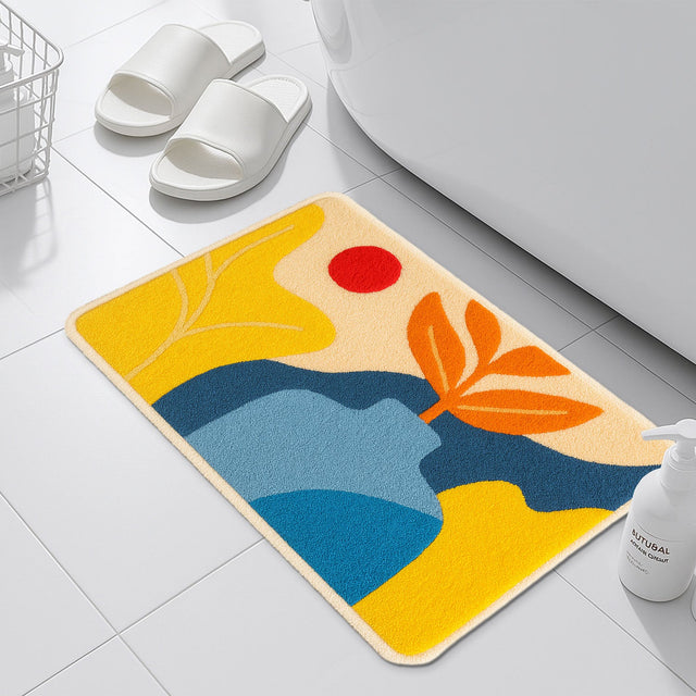 Feblilac Modern Abstract Vase Bath Mat – Artistic Non-Slip Rug in Yellow, Blue & Red